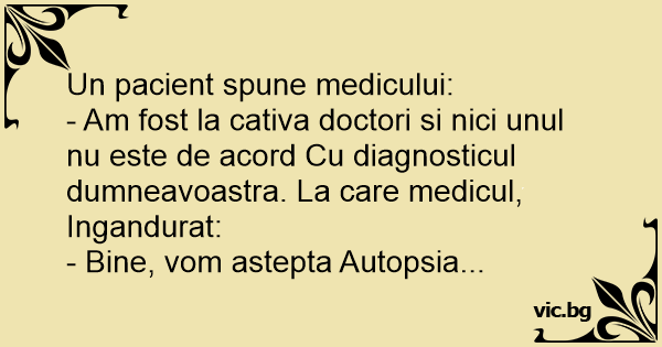 - Am fost la cativa doctori si nici unul nu este de acord Cu diagnosticul dumneavoastra. La care medicul, Ingandurat:
