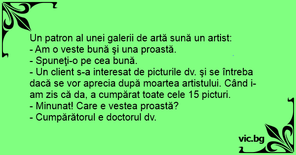 - Un client s-a interesat de picturile dv. şi se întreba dacă se vor aprecia după moartea artistului. Când i-am zis că da, a cumpărat toate cele 15 picturi.