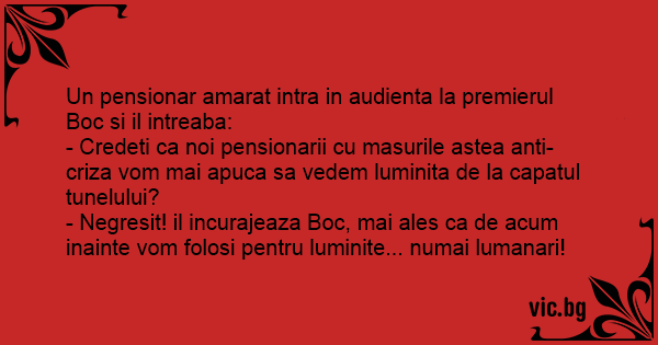 Un pensionar amarat intra in audienta la premierul Boc si il intreaba: