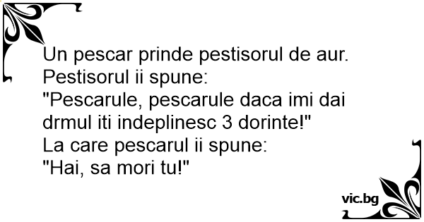 "Pescarule, pescarule daca imi dai drmul iti indeplinesc 3 dorinte!"
