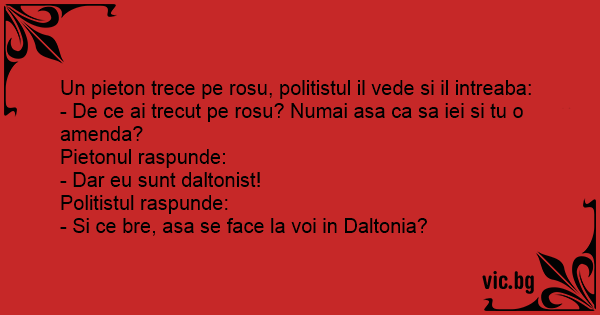 Un pieton trece pe rosu, politistul il vede si il intreaba: