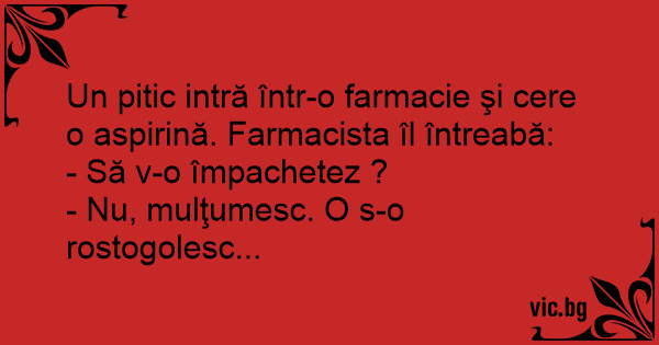 Un pitic intră într-o farmacie şi cere o aspirină. Farmacista îl întreabă: