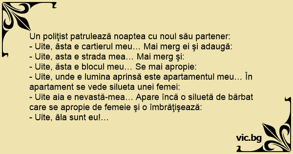 - Uite aia e nevastă-mea… Apare încă o siluetă de bărbat care se apropie de femeie şi o îmbrăţişează: