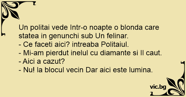 Un politai vede Intr-o noapte o blonda care statea in genunchi sub Un felinar.