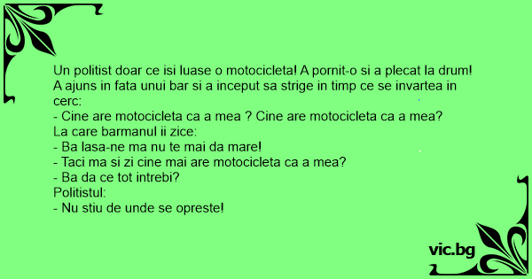 - Taci ma si zi cine mai are motocicleta ca a mea?