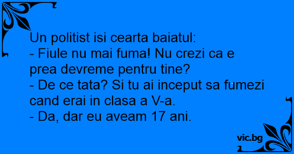 - De ce tata? Si tu ai inceput sa fumezi cand erai in clasa a V-a.