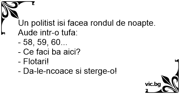 Un politist isi facea rondul de noapte. Aude intr-o tufa: