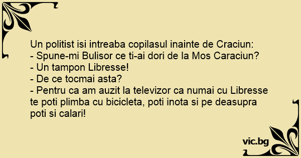 - Spune-mi Bulisor ce ti-ai dori de la Mos Caraciun?