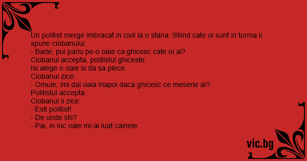 Un politist merge imbracat in civil la o stana. Stiind cate oi sunt in turma ii spune ciobanului: