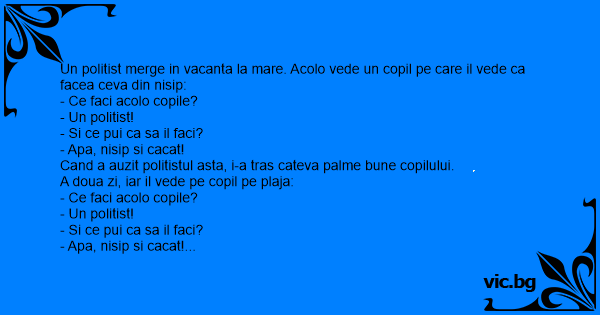 Un politist merge in vacanta la mare. Acolo vede un copil pe care il vede ca facea ceva din nisip: