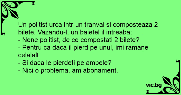 Un politist urca intr-un tranvai si composteaza 2 bilete. Vazandu-l, un baietel il intreaba:
