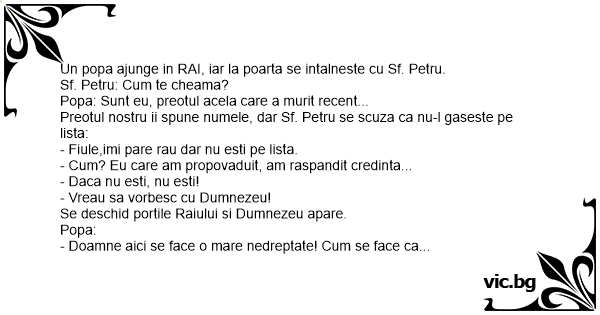 Preotul nostru ii spune numele, dar Sf. Petru se scuza ca nu-l gaseste pe lista: