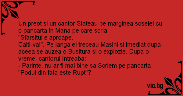 - Parinte, nu ar fi mai bine sa Scriem pe pancarta "Podul din fata este Rupt"?
