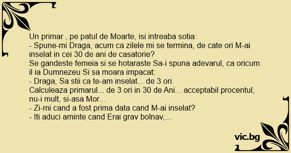 Un primar , pe patul de Moarte, isi intreaba sotia: