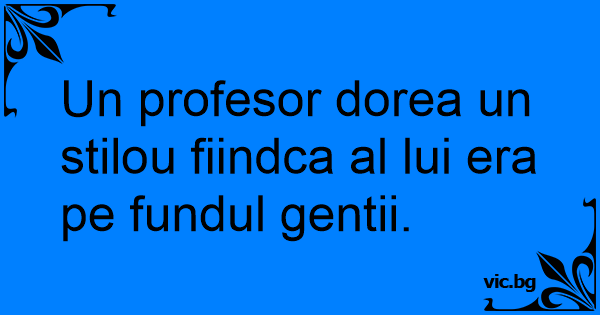 Un profesor dorea un stilou fiindca al lui era pe fundul gentii.