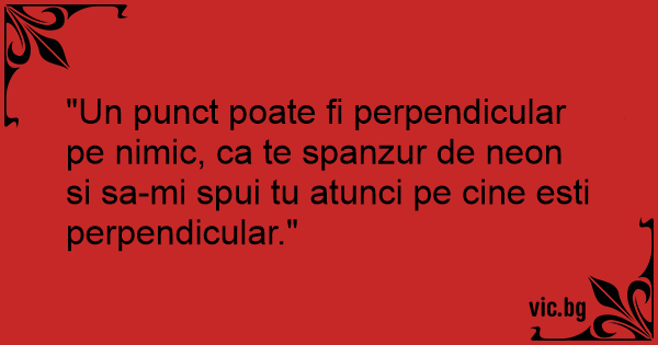 "Un punct poate fi perpendicular pe nimic, ca te spanzur de neon si sa-mi spui tu atunci pe cine еsтi perpendicular."