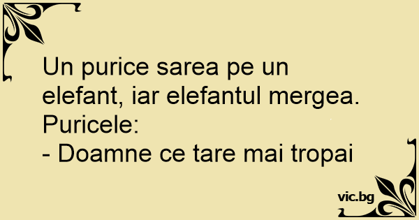 Un purice sarea pe un elefant, iar elefantul mergea.