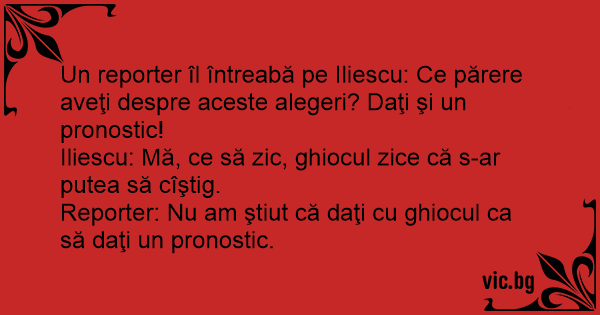 Reporter: Nu am ştiut că daţi cu ghiocul ca să daţi un pronostic.