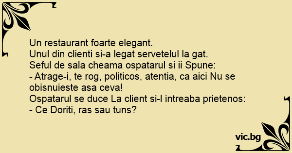Ospatarul se duce La client si-l intreaba prietenos:
