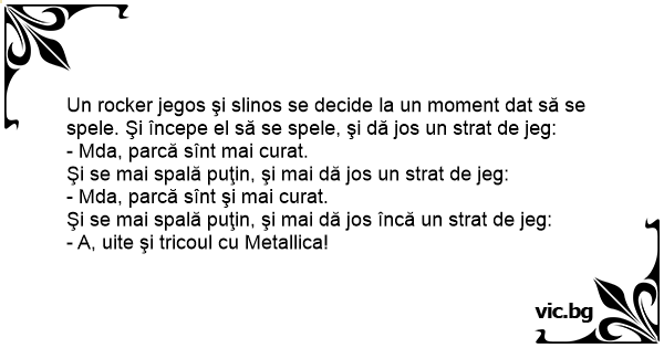 Un rocker jegos şi slinos se decide la un moment dat să se spele. Şi începe el să se spele, şi dă jos un strat de jeg: