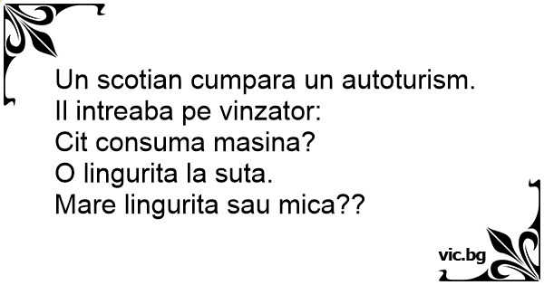 Un scotian cumpara un autoturism. Il intreaba pe vinzator:
