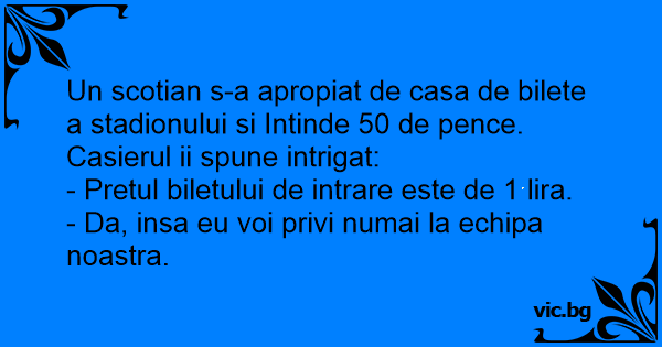 Un scotian s-a apropiat de casa de bilete a stadionului si Intinde 50 de pence. Casierul ii spune intrigat: