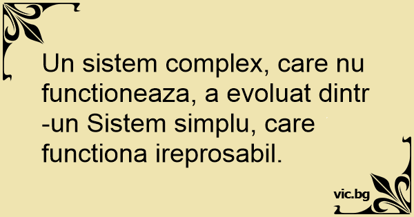 Un sistem complex, care nu functioneaza, a evoluat dintr-un Sistem simplu, care functiona ireprosabil.