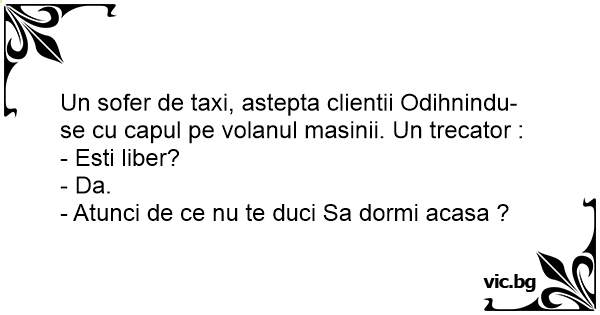 Un sofer de taxi, astepta clientii Odihnindu-se cu capul pe volanul masinii. Un trecator :