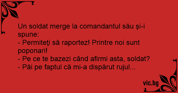 - Permiteţi să raportez! Printre noi sunt poponari!