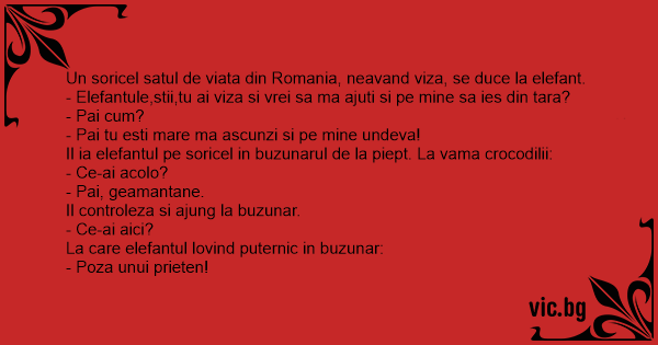 - Elefantule,stii,tu ai viza si vrei sa ma ajuti si pe mine sa ies din tara?