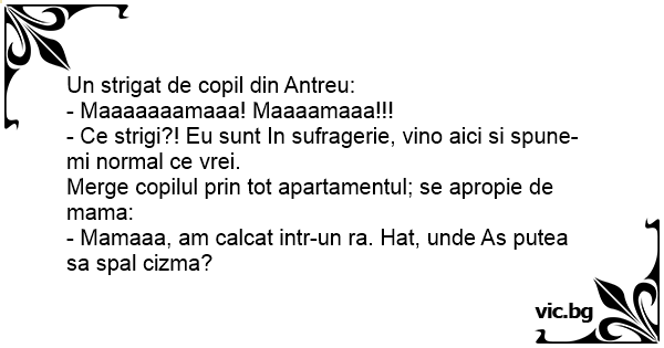 - Mamaaa, am calcat intr-un ra. Hat, unde As putea sa spal cizma?