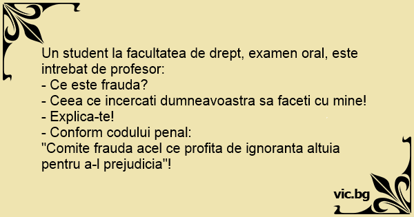 Un student la facultatea de drept, examen оrаl, este intrebat de profesor:
