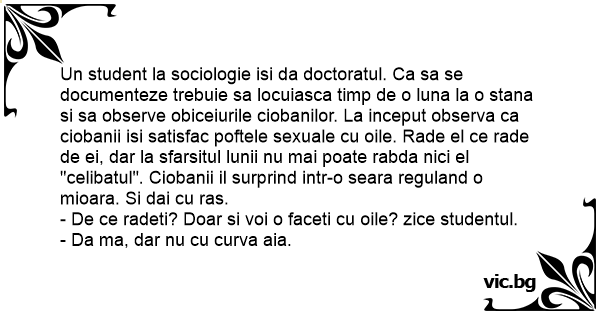 - De ce radeti? Doar si voi o faceti cu oile? zice studentul.