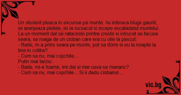 Dupa ce se satura studentul, il intreaba pe cioban:
