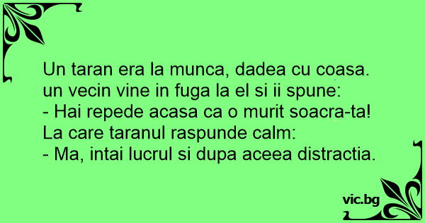 Un taran era la munca, dadea cu coasa. un vecin vine in fuga la el si ii spune: