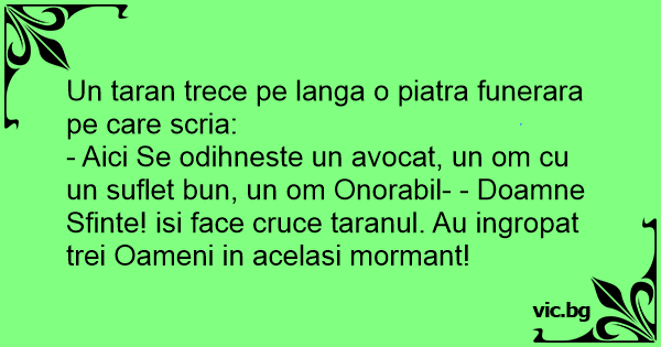 - Aici Se odihneste un avocat, un om cu un suflet bun, un om Onorabil- - Doamne Sfinte! isi face cruce taranul. Au ingropat trei Oameni in acelasi mormant!