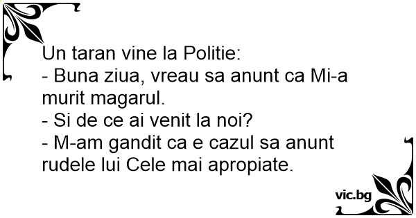 - Buna ziua, vreau sa anunt ca Mi-a murit magarul.