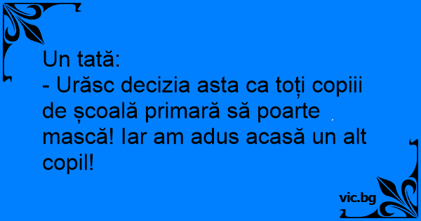 - Urăsc decizia asta ca toți copiii de școală primară să poarte mască! Iar am adus acasă un alt copil!