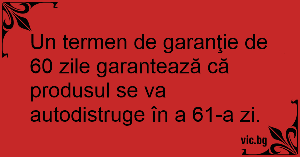 Un termen de garanţie de 60 zile garantează că produsul se va autodistruge în a 61-a zi.