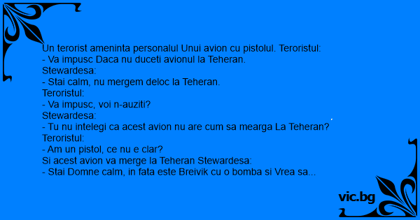 Un terorist ameninta personalul Unui avion cu pistolul. Teroristul:
