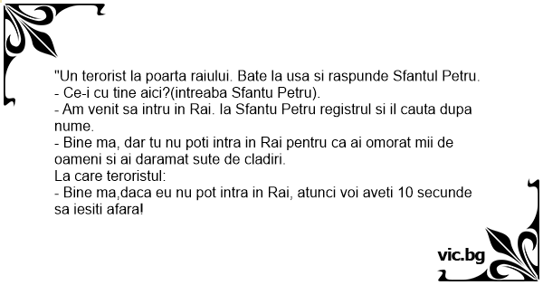 - Bine ma,daca eu nu рот intra in Rai, atunci voi aveti 10 secunde sa iesiti afara!
