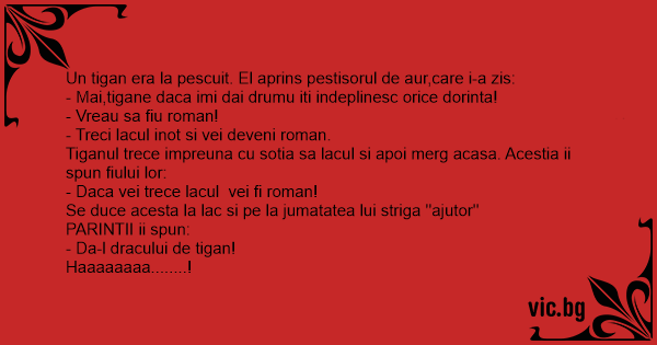 Un tigan era la pescuit. El aprins pestisorul de aur,care i-a zis: