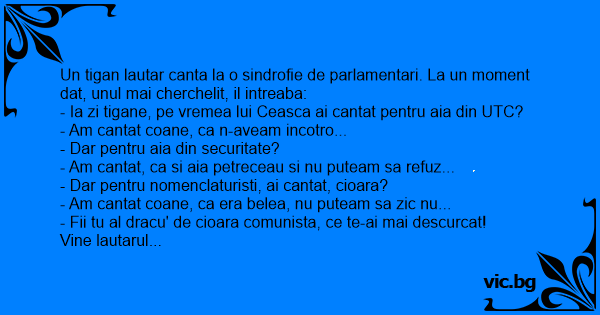 Un tigan lautar canta la o sindrofie de parlamentari. La un moment dat, unul mai cherchelit, il intreaba: