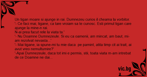 Un tigan moare si ajunge in rai. Dumnezeu curios il cheama la vorbitor.