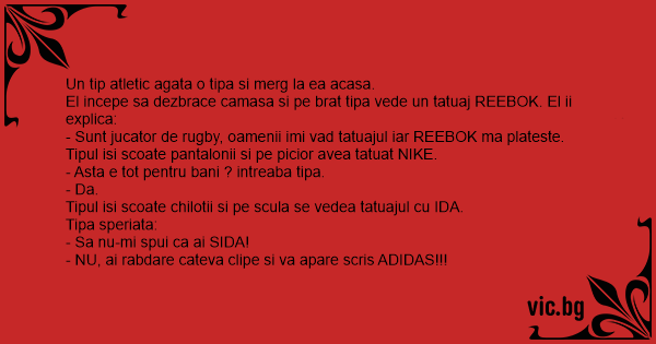El incepe sa dezbrace camasa si pe brat tipa vede un tatuaj REEBOK. El ii explica: