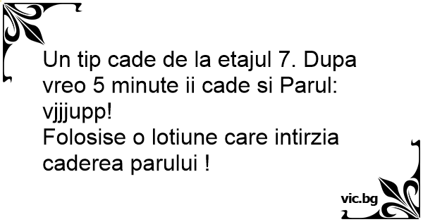 Un tip cade de la etajul 7. Dupa vreo 5 minute ii cade si Parul: vjjjupp!