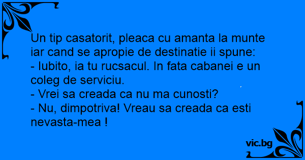 Un tip casatorit, pleaca cu amanta la munte iar cand se apropie de destinatie ii spune: