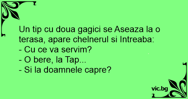 Un tip cu doua gagici se Aseaza la o terasa, apare chelnerul si Intreaba: