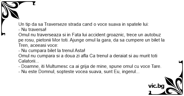 Omul nu cumpara si a doua zi afla Ca trenul a deraiat si au murit toti Calatorii...