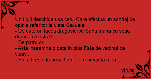 Un tip ii deschide usa celui Care efectua un sondaj de opinie referitor la viata Sexuala.